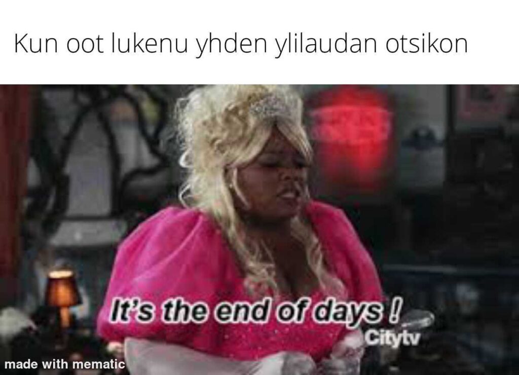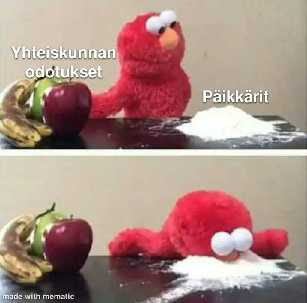 Pajan osana akatemialaisia kannustettiin luomaan meemejä ajankohtaisista tai itselle tärkeistä aiheista. Alla meemipajojen satoa eri vuosilta.
